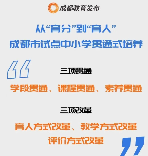 同时,四川成都迎来多所“小初高”十二年贯通式学校和“初高”六年贯通式学校。当地教育局官网相关政策解读显示,贯通式培养是有序推进中考改革的尝试。成都市自2025年起,探索开展相关贯通式培养改革试点。